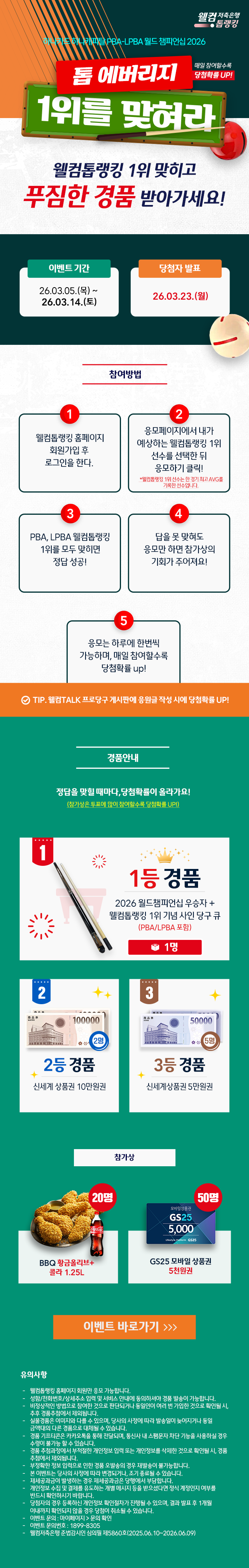 웰컴톱랭킹 당구 이벤트